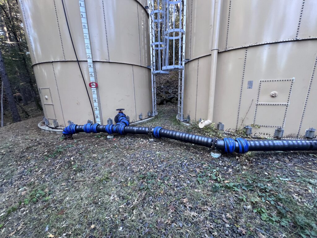 WOW! We now have over 120,000 gallons of fresh spring water stored for gravity-fed fire fighting (just in case) and potable uses! After years of planning and engineering and adjustments and permitting and finding a contractor to do the work, the grading of the enlarged tank site finally began in the fall of 2016…